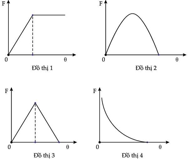 Đồ thị biểu diễn đúng lực ma sát F do mặt phẳng nghiêng tác dụng lên vật theo góc θ là