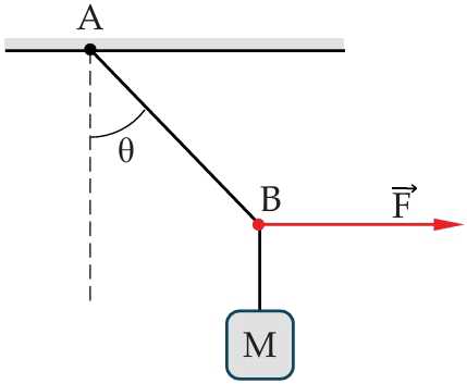 Một sợi dây khác được buộc vào điểm B và kéo nó căng ngang bằng một lực F. Nếu AB với phương thẳng đứng một góc θ thì lực căng của sợi dây AB là<