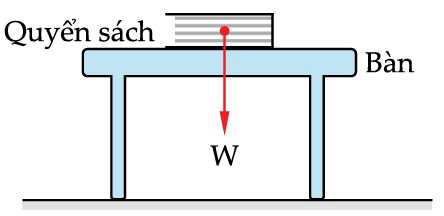 nên phản lực tác dụng có cùng độ lớn W với trọng lực tác dụng và lực này từ bàn tác dụng vào cuốn sách.- Phản lực (Lực 2): Lực Trái Đất bị cuốn sách