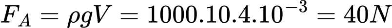 . Với g là gia tốc trọng trường, lực đẩy Archimedes tác dụng lên vật được xác định bởi