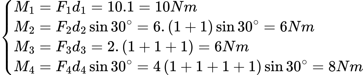 Momen của ngẫu lực trên có độ lớn bằng