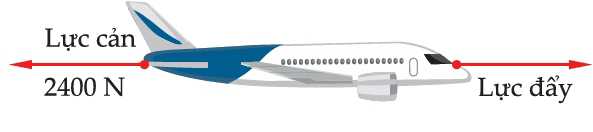 Vì máy bay bay ngang với tốc độ không đổi nên các lực tác dụng vào nó cân bằng.