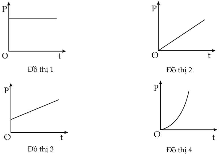 Câu 8 [757949]: Một vật bắt đầu chuyển động từ trạng thái nghỉ dưới tác dụng của một lực F không đổi. Các đồ thị bên dưới là đồ thị biểu diễn sự phụ thuộc vào thời gian của công suất tức thời gây bởi lực F.