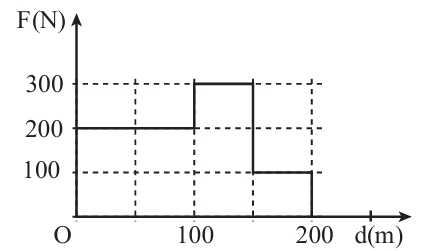 Câu 10 [757953]: Đồ thị hình vẽ bên dưới biểu diễn lực tác dụng F của người công nhân thay đổi trong quá trình kéo bao tải trên mặt phẳng nghiêng và độ dịch chuyển d tương ứng theo phương của lực.