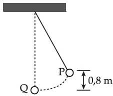 Câu 50 [758036]: Một quả lắc được thả từ trạng thái nghỉ từ điểm P cách vị trí thấp nhất của nó 0,8 m, như thể hiện trong sơ đồ. Bỏ qua sức cản của không khí, hãy tìm tốc độ của quả lắc khi nó đạt đến Q. Lấy g=10 m/s².