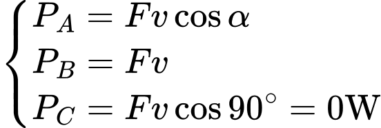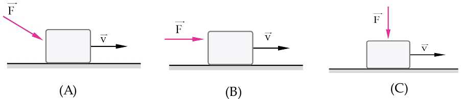 Câu 9 [757950]: Tác dụng các lực có cùng độ lớn vào vật theo các hướng khác nhau, làm vật chuyển động với cùng vận tốc không đổi v. Sắp xếp theo thứ tự giảm dần của công suất mà lực đã sinh ra trong các trường hợp A, B và C.