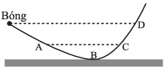(2) Vận tốc của quả bóng tại điểm C bằng vận tốc của quả bóng tại điểm A do cơ năng bảo toàn, thế năng tại 2 điểm bằng nhau nên động năng của vật tại 2 thời điểm bằng nhau và vận tốc của vật tại 2 thời điểm là như nhau.