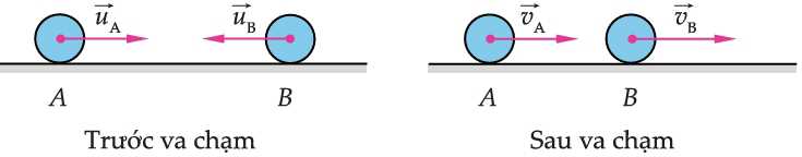 Hai vật A và B ngược hướng, động lượng của hệ: