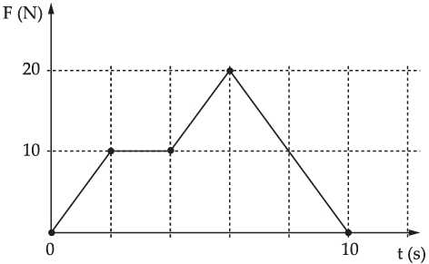 Câu 2 [758066]: Một chất điểm có khối lượng 2 kg đang ở trạng thái nghỉ. Một lực F bắt đầu tác dụng lên vật theo môt hướng không đổi, có độ lớn thay đổi theo thời gian được thể hiện như đồ thị hình vẽ.