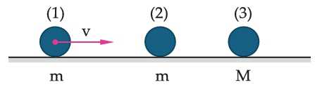 Câu 11 [758083]: Cho hai quả bóng (1) và (2) giống nhau có khối lượng m và quả bóng (3) có khối lượng M được đặt trên một bề mặt không ma sát như hình vẽ.