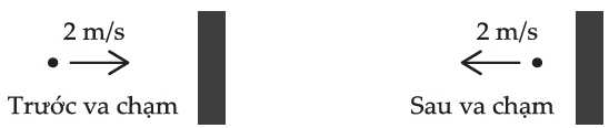 Khối trượt trên một mặt phẳng nằm ngang nhẵn, vật không chịu tác dụng của ngoại lực nên nó chuyển động đều, vận tốc không đổi dẫn đến động lượng p không đổi. Tại vị trí vật va chạm với bức tường, vận tốc, động lượng giảm nhanh về 0. Sau đó vật chuyển động với vận tốc ngược chiều và có độ lớn bằng độ lớn vận tốc ban đầu.
