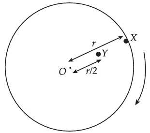 Câu 38 [759696]: Các hạt X và Y được cố định ở khoảng cách r và r/2 lần lượt từ tâm O của một nền tròn nằm ngang là quay đều như hình vẽ. Tỷ số gia tốc của X so với Y là