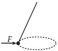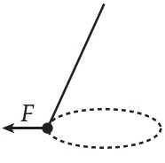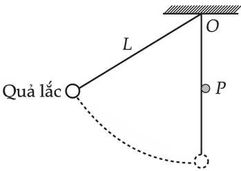 Một quả nặng được treo vào điểm cố định O bằng một sợi dây không co giãn có chiều dài L. Một chốt nhỏ P được cố định ở khoảng cách L theo phương thẳng đứng bên dưới O. Quả nặng được kéo sang một bên rồi thả ra từ trạng thái nghỉ như hình vẽ. Khi sợi dây vừa chạm vào chốt, đại lượng vật lý nào sau đây sẽ tăng đột ngột?
