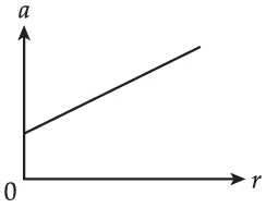 Câu 34 [759686]: Một đĩa than trên bàn xoay đang quay với chu kỳ không đổi. Đồ thị nào biểu diễn đúng mối quan hệ giữa gia tốc a của các hạt cố định trên bề mặt đĩa than và khoảng cách r của chúng tính từ tâm quay?