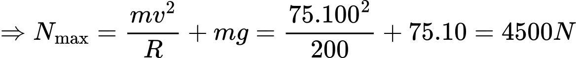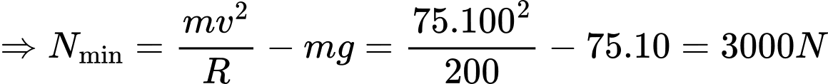 Câu 14 [759667]: Lực nén của phi công vào ghế máy bay ở các điểm cao nhất và thấp nhất của vòng nhào lộn là bao nhiêu? Nếu khối lượng của phi công bằng 75 kg, bán kính của vòng nhào lộn bằng 200 m, và vận tốc của máy bay trong vòng nhào lộn luôn không đổi và bằng 360 km/h.