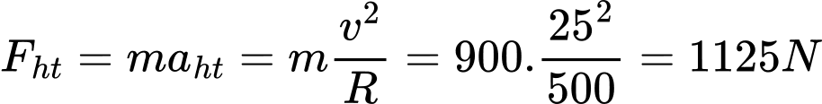 Một xe hơi nặng 900 kg chuyển động qua một khúc cua (đường vòng cùng), phẳng bán kính 500 m với vận tốc 25 m/s.