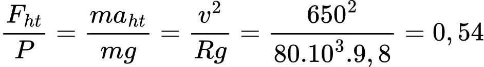 Câu 31 [759682]: Một máy bay đang chuyển động trên một mặt phẳng nằm ngang với tốc độ không đổi 650 m/s. Bán kính quỹ đạo tròn của nó là 80 km. Lấy g = 9,8 m/s2. Tỷ số giữa lực hướng tâm và trọng lượng của máy bay là bao nhiêu?