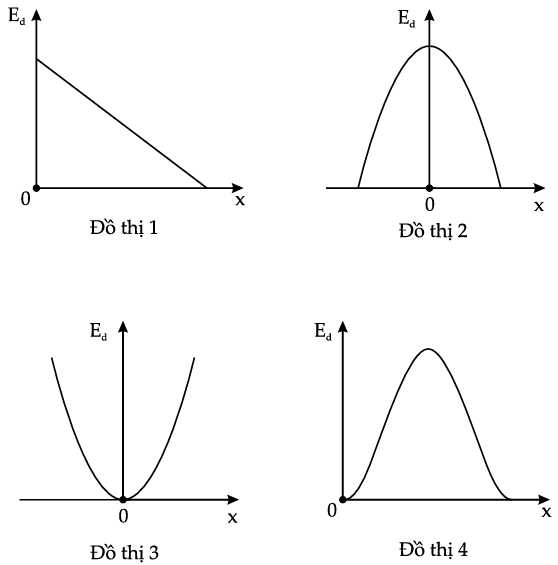 Cho các đồ thị bên dưới.Đồ thị nào biểu diễn đúng sự phụ thuộc động năng vào li độ của một chất điểm dao động điều hòa?