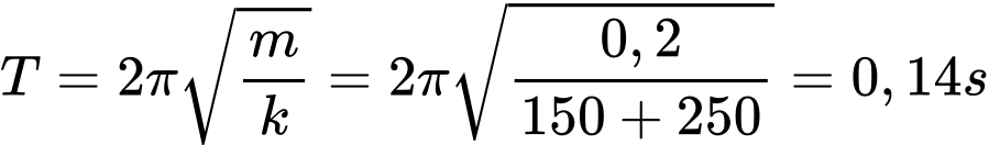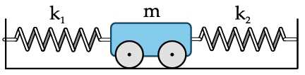 Biết khối lượng của xe lăn là m = 200g, độ cứng của các lò xo tương ứng là k1 = 150 N/m và k2 = 250 N/m. Chu kì dao động của xe lăn là