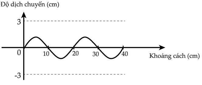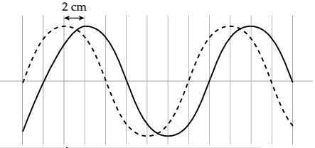 Câu 23 [758968]: Đường cong liền nét trong sơ đồ cho thấy sóng ngang tại một thời điểm nhất định. Sau 0,05 giây, sóng đã truyền đi được quãng đường 2 cm và được biểu thị bằng đường cong đứt nét. Tìm bước sóng và tần số của sóng.