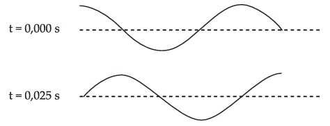 Các hình trên cho thấy một sóng trong cùng một đoạn dây tại hai thời điểm khác nhau. Chu kỳ lớn nhất có thể của sóng là bao nhiêu