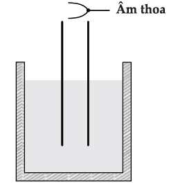 Câu 9 [758938]: Một ống thủy tinh dài, được nhúng một đầu vào trong nước, đầu trên ở ngoài không khí. Một âm thoa phát ra sóng âm được đặt sát đầu trên của ống như hình vẽ. Lần đầu tiên người ta nghe thấy âm thanh to khi độ cao h của đầu ống so với mặt nước là 18,8 cm. Lần tiếp theo người ta nghe âm thanh to là khi độ cao h của đầu ống so với mặt nước là 56,4 cm. Biết tốc độ truyền âm trong không khí là 330 m/s. Tần số âm thanh do âm thoa phát ra là