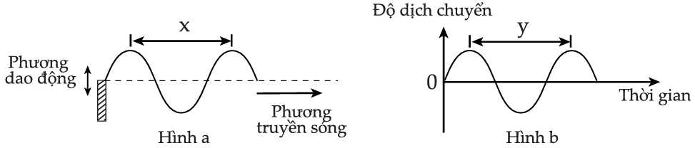 Từ đồ thị ta thấy x là bước sóng, y là chu kì sóng.