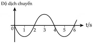 Một sóng truyền dọc theo một sợi dây về bên trái. Hình trên cho thấy dạng sóng của nó tại thời điểm t = 1 s. Đồ thị li độ - thời gian nào sau đây biểu diễn tốt nhất dao động của điểm P? Lấy chiều dương là chiều hướng lên trên.