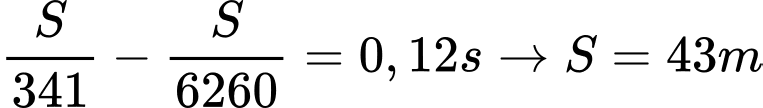 Câu 10 [758939]: Một người dùng búa, gõ vào đầu một thanh nhôm. Người thứ hai ở đầu kia áp tai vào thanh nhôm và nghe được âm của tiếng gõ hai lần (một lần qua không khí và một lần qua nhôm), khoảng thời gian giữa hai lần nghe được là 0,12 s. Biết rằng tốc độ truyền âm trong nhôm và trong không khí lần lượt là 6260 m/s và 331 m/s. Độ dài của thanh nhôm bằng