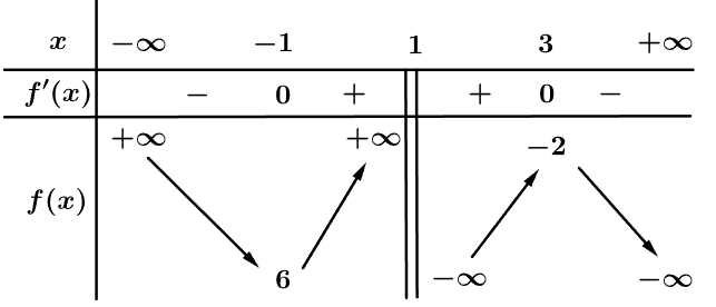Ta có bảng biến thiên của hàm số
