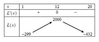 Dựa vào bảng biến thiên của phần c), lợi nhuận tối đa đạt được trong một ngày là 2000 (nghìn đồng).
