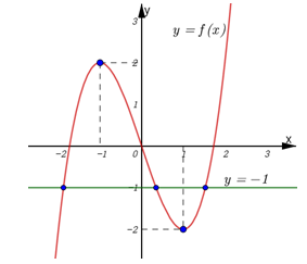 có đồ thị là đường cong trong hình bên. Số nghiệm thực của phương trình