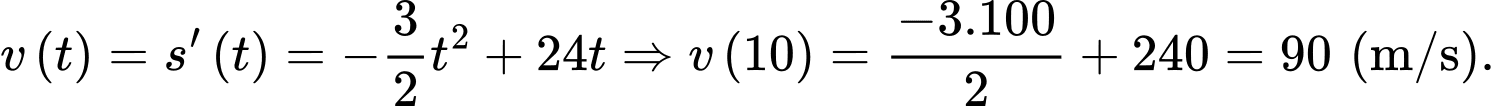 c) Theo ứng dụng của đạo hàm, ta có vận tốc bằng đạo hàm cấp một của quãng đường hay