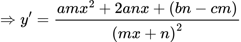 Note: Công thức đạo hàm nhanh cho phân thức dạng bậc nhất trên bậc nhất: