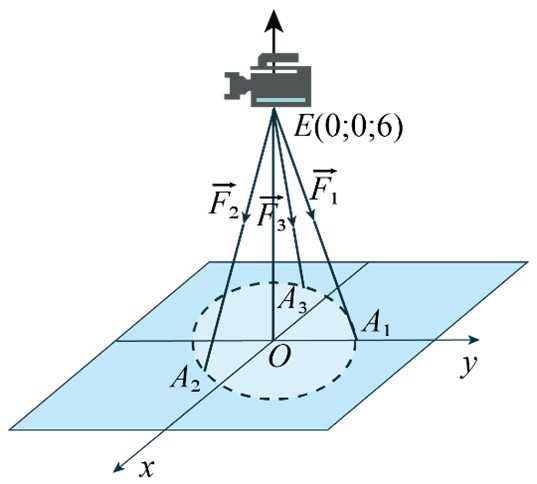 như hình vẽ, các điểm tiếp xúc với mặt đất của ba chân lần lượt là