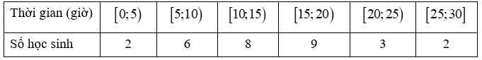 Câu 14 [715751]: Tìm hiểu thời gian sử dụng điện thoại trong tuần đầu tháng 6/2024 của kỳ nghỉ hè lớp chủ nhiệm. GVCN thu được kết quả sau: