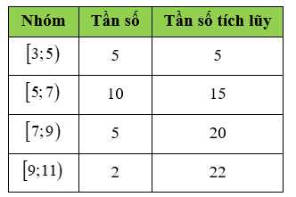 Ta có bảng tần số ghép nhóm có tần số tích lũy như sau:
