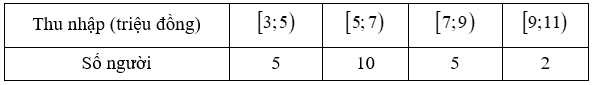 Câu 11 [715972]: Thống kê thu nhập theo tháng (đơn vị: triệu đồng) của một nhóm người chạy xe máy “Xanh XM” được cho trong bảng sau: