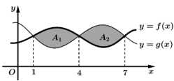 Khi đó, diện tích hình phẳng giới hạn bởi đồ thị của hai hàm số