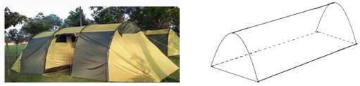 Câu 4 [865163]: Nhân dịp đi dã ngoại, lớp 12a dự kiến dựng một cái trại các khung xương có dạng hình parabol như hình vẽ. Nền của lều trại là một hình chữ nhật có kích thước bề ngang 3 mét, chiều dài 5 mét, đỉnh trại cách nền 3 mét. Thể tích phần không gian bên trong lều trại bằng bao nhiêu mét khối?