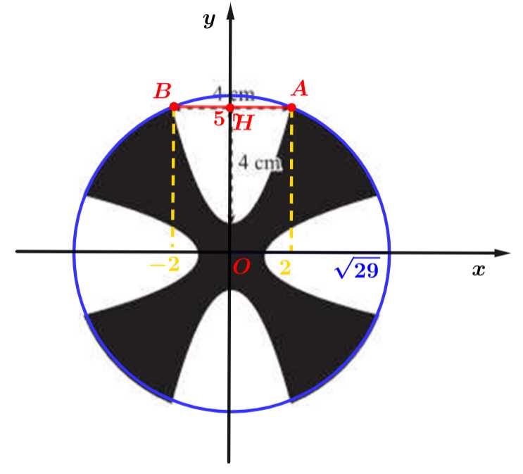 cm, sau đó cắt bốn góc đối xứng nhau bởi bốn parabol giống nhau như hình vẽ dưới đây. Phần hình phẳng còn lại sau khi cắt được tô màu, chính là hình dạng cuối cùng của logo dùng để dự thi. Tính diện tích (đơn vị: