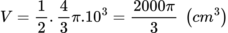 nên ta có thể tích của bát khi chứa đầy nước là