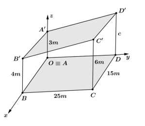 (đơn vị trên mỗi trục tọa độ là mét), một ngôi nhà như hình vẽ dưới đây có sàn nhà nằm trên mặt phẳng