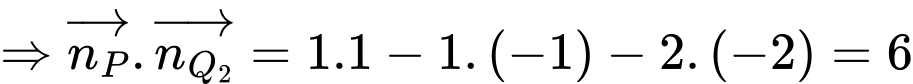 Ta có tích vô hướng của hai vectơ pháp tuyến là