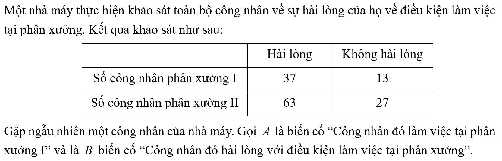 Ta có hai biến cố