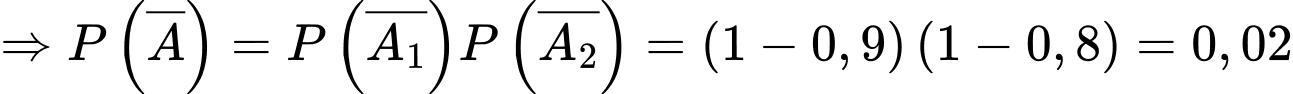 Câu 13 [868538]: Một chiếc máy có 2 động cơ I và II hoạt động độc lập với nhau. Xác suất để động cơ I chạy tốt và động cơ II chạy tốt lần lượt là 0,9 và 0,8. Tính xác suất để có ít nhất 1 động cơ chạy tốt.