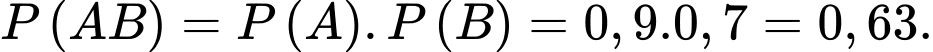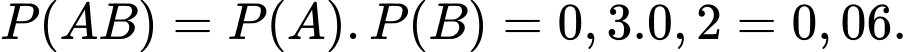 Câu 16 [879760]: Đội tuyển cầu lông của Trường X có 2 vận động viên, mỗi vận động viên thi đấu một trận. Xác suất thắng trận của các vận viên A, B lần lượt là: 0,9; 0,7. Tính xác suất