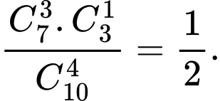 Câu 5 [805835]: (HỌCKỲIĐANPHƯỢNGHÀNỘI2017-2018) Một hộp đèn có 12 bóng, trong đó có 4 bóng hỏng. Lấy ngẫu nhiên 3 bóng. Tính xác suất để trong 3 bóng có 1 bóng hỏng.