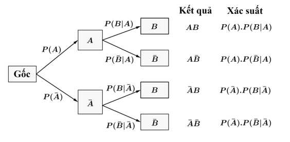 - Xác suất xảy ra của mỗi kết quả bằng tích các xác suất trên các nhánh của cây đi đến kết quả đó.