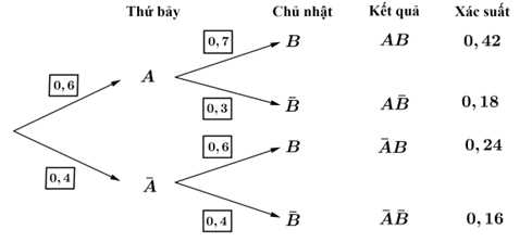 Ở, gọi A là biến cố “Ngày thứ Bảy trời nắng” và B là biến cố “Ngày Chủ nhật trời nắng”.